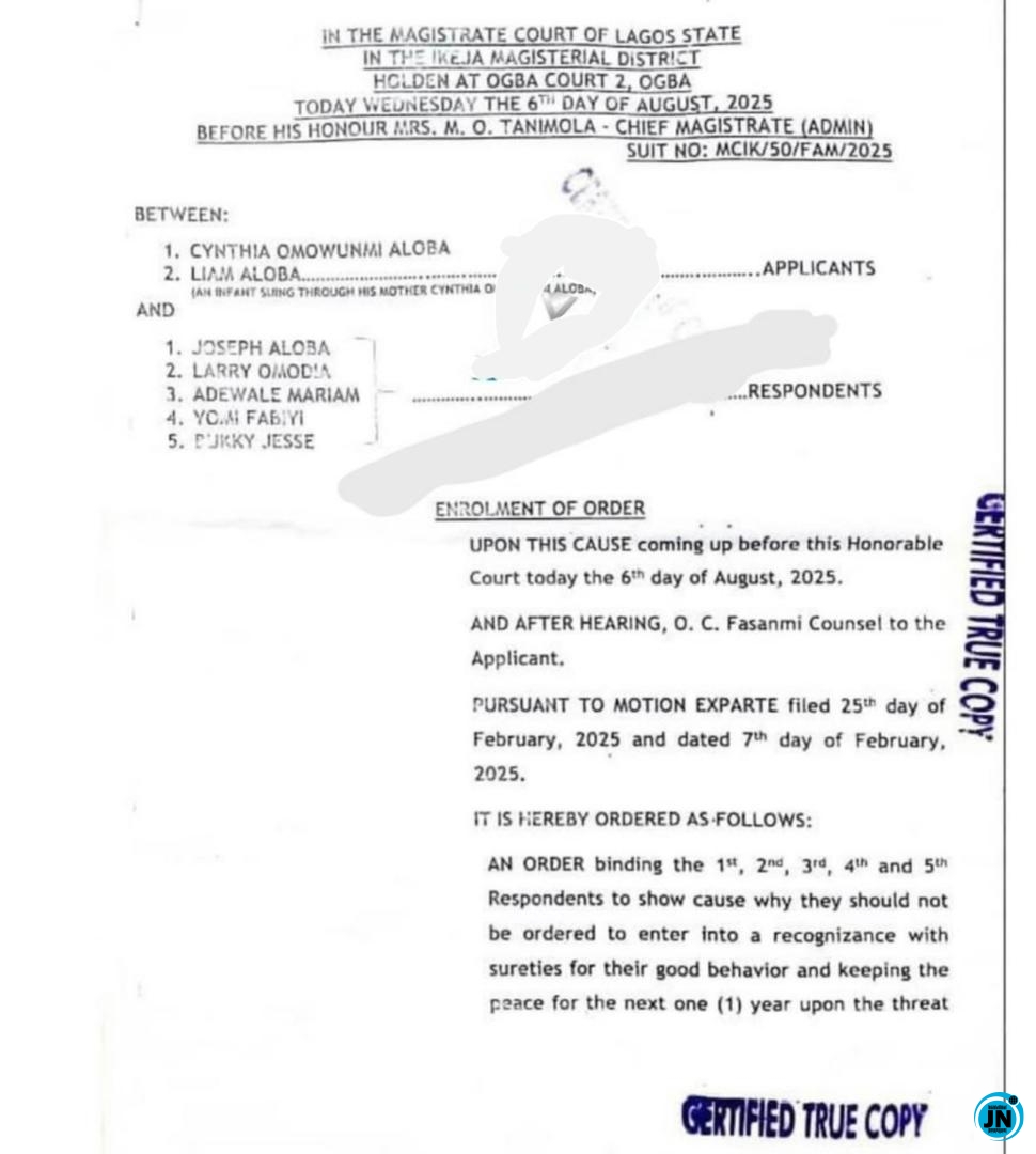 The restraining order extends to all forms of media, including social media platforms, interviews, television appearances, and other public forums. The court’s decision aims to ensure that Omowunmi and Liam are shielded from harassment, bullying, or any form of public scrutiny arising from ongoing disputes and controversies involving the named individuals. The order is set to be in effect for one year, giving the family a period of legal protection from further negative publicity or provocation.