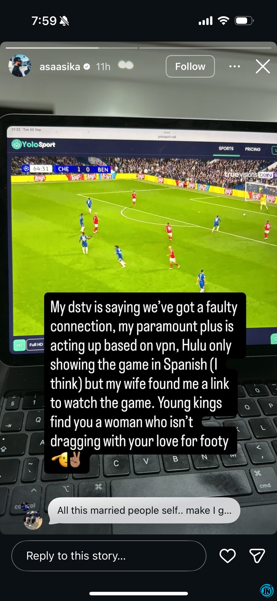 Others joined the conversation with jokes, curiosity, and admiration. One user cheekily asked how exactly Asa’s wife managed to get the match link so quickly, while others praised him for celebrating his wife’s support publicly.