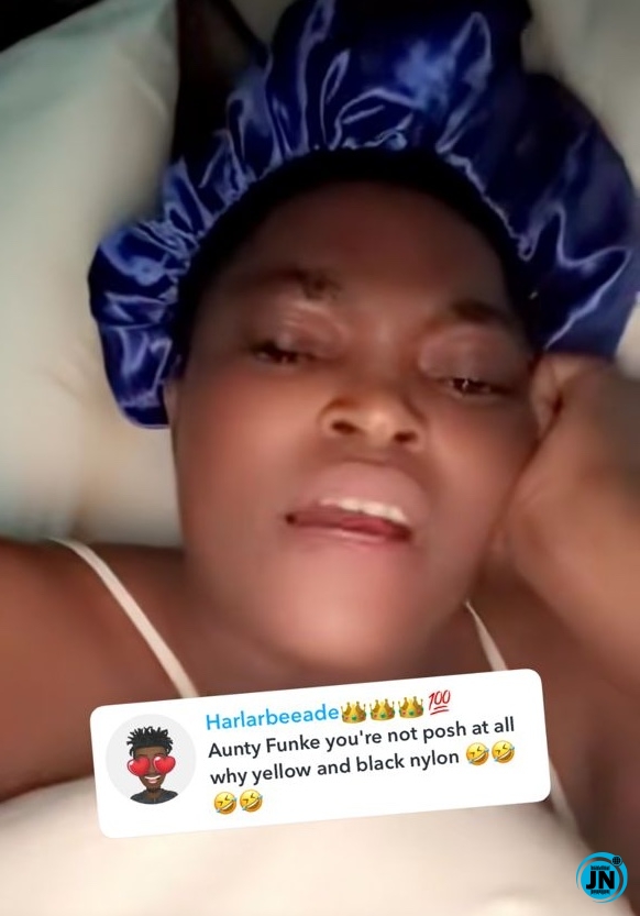 However, what was meant to be a sweet and relatable moment quickly drew unsolicited judgment. One social media user took issue with her choice of packaging, writing, “Aunty Funke you are not posh at all. Why yellow and black nylon?” The comment attempted to shame the actress for not living up to what the user believed was befitting of her celebrity status.